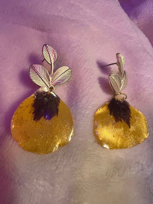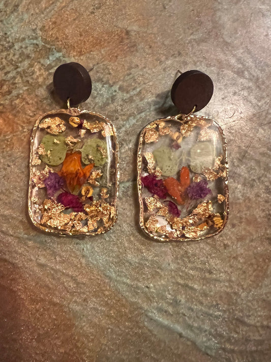 Resin and real flower dangle earrrings