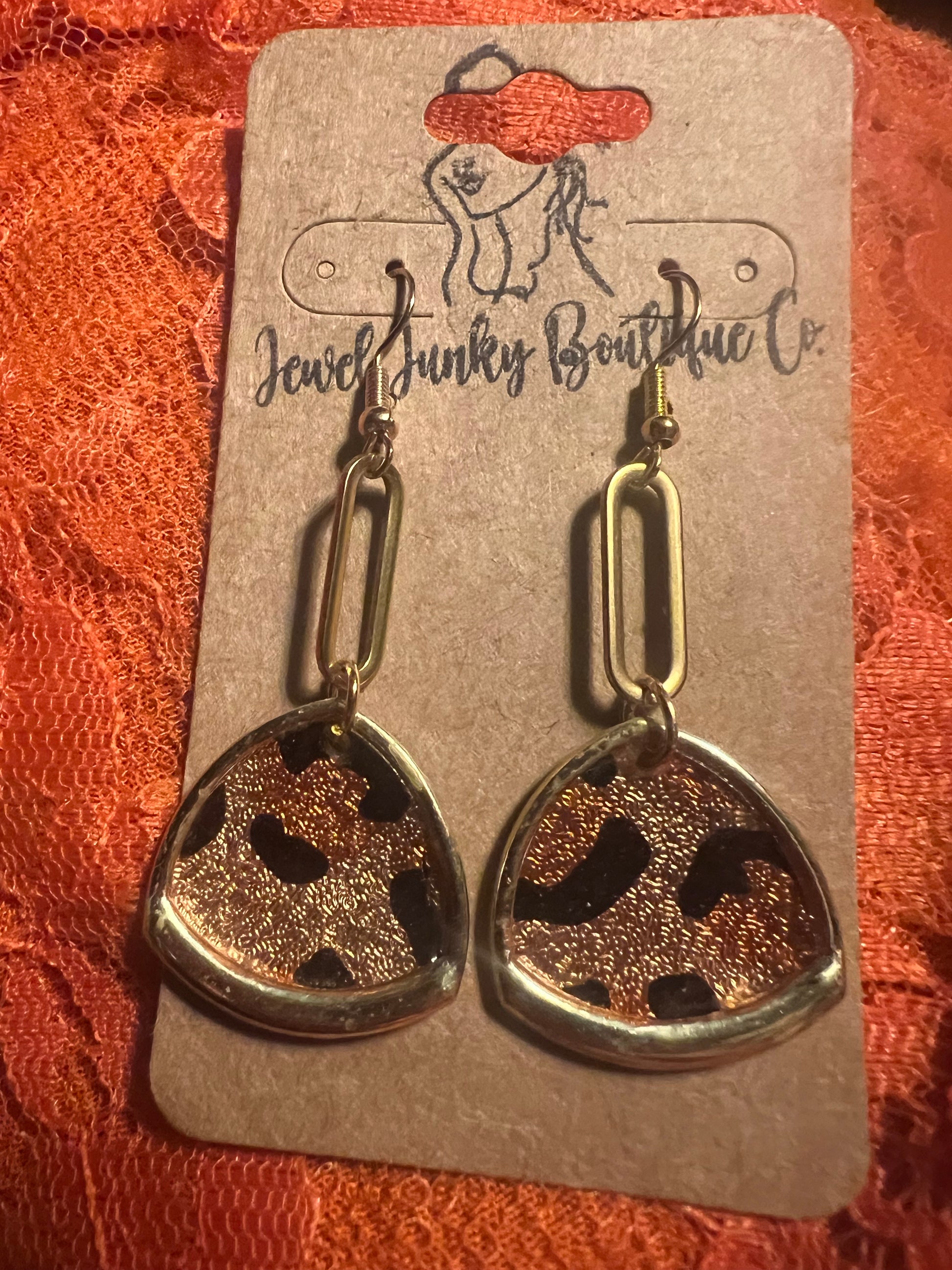 Lightweight shimmery earth tones cheetah in gold hardware . 1:5 “ long